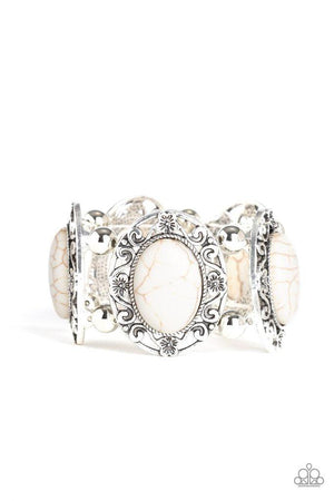 Rodeo Rancho White Stone and Silver Stretch Bracelet - Paparazzi Accessories