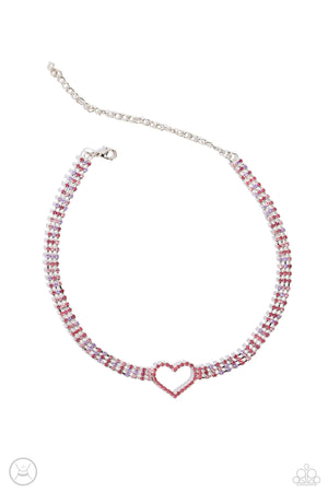 Rows of Romance Pink Rhinestone Heart Choker Necklace - Paparazzi Accessories
