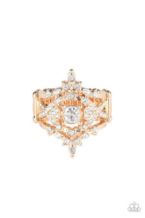 Royal Love Story Gold and White Rhinestone Ring - Paparazzi Accessories