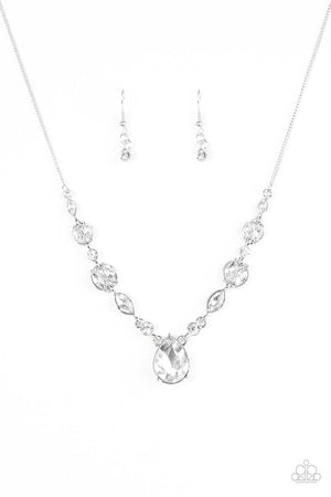 Royal Rendezvous White Teardrop Rhinestone Necklace - Paparazzi Accessories