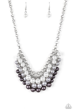 Run for the Heels White, Silver and Gunmetal Pearl Necklace - Paparazzi Accessories