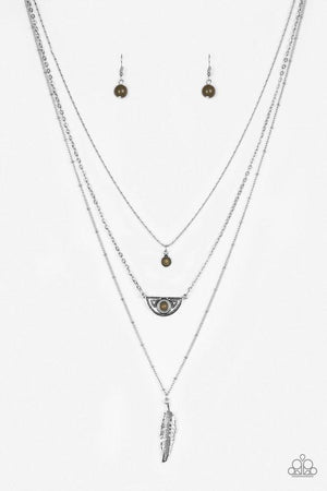 Sahara Sparrow Green and Silver Feather Necklace - Paparazzi Accessories