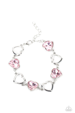 Sentimental Sweethearts Pink Rhinestone Heart Bracelet - Paparazzi Accessories