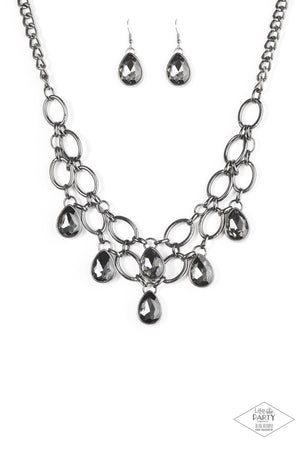 Show Stopping Shimmer Gunmetal Rhinestone Necklace - Paparazzi Accessories