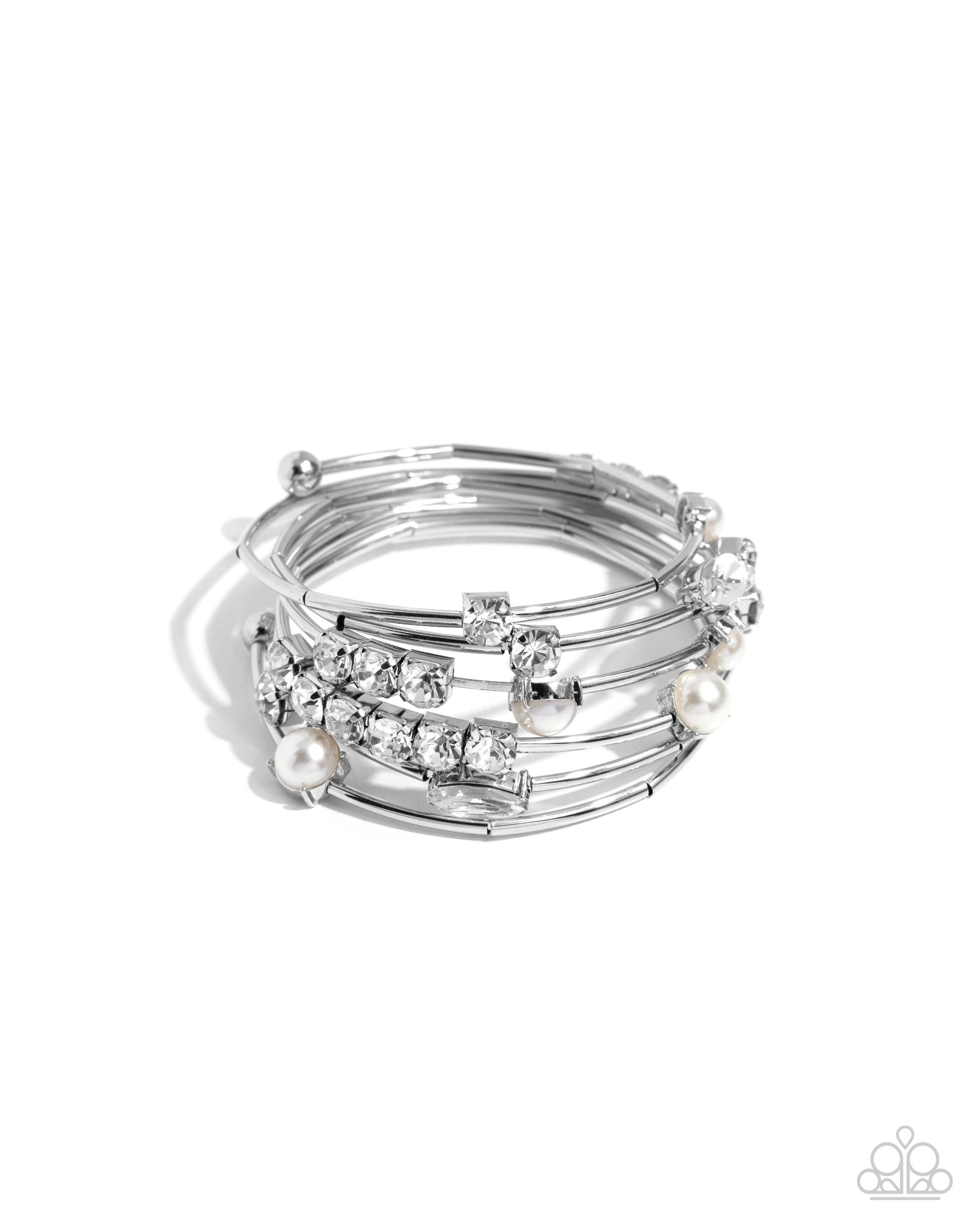 Showtime Sparkle White Rhinestone & Pearl Coil Bracelet - Paparazzi Accessories