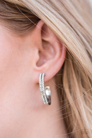 Slay Your Way White Rhinestone Hoop Earrings - Paparazzi Accessories