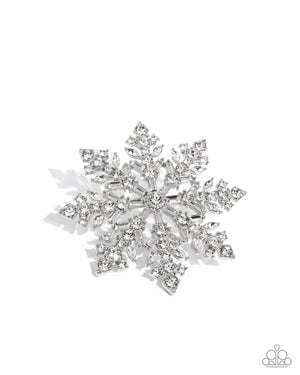 Snowflake Solstice White Rhinestone Brooch - Paparazzi Accessories