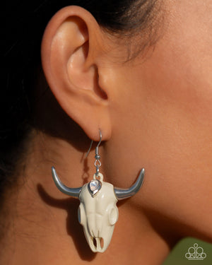 Southwestern Skull White Earrings - Paparazzi Accessories