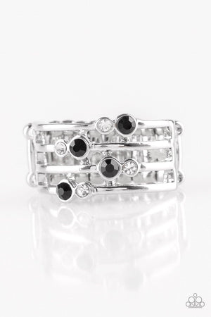 Sparkle Showdown Silver and Black Ring - Paparazzi Accessories