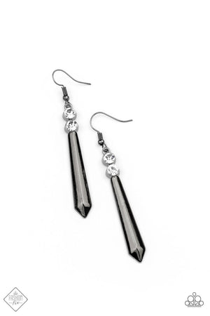 Sparkle Stream Gunmetal Black and White Rhinestone Earrings - Paparazzi Accessories