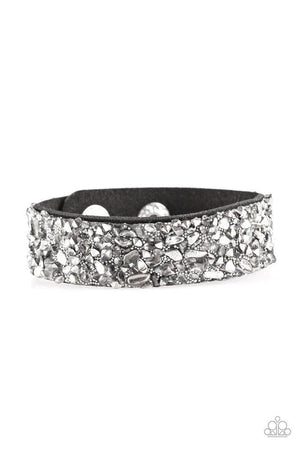 Stardust Sparkle Silver and Black Crushed Stone Urban Wrap Snap Bracelet - Paparazzi Accessories