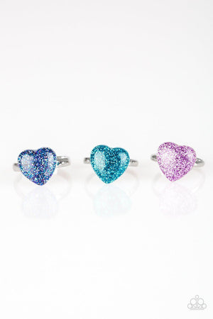 Starlet Shimmer Children's Glitter Heart Rings - Paparazzi Accessories (set of 5)