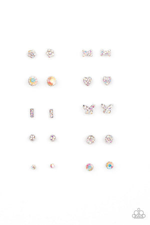 Starlet Shimmer Children's Iridescent Rhinestone Post Earrings v2 - Paparazzi Accessories (set of 10 pairs)