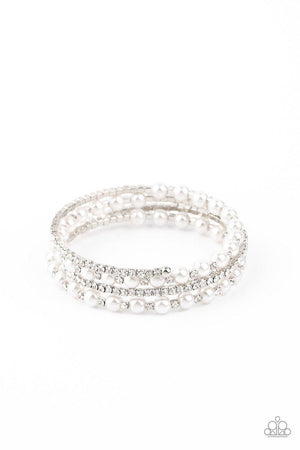 Starry Strut White Pearl and Rhinestone Infinity Wrap Bracelet - Paparazzi Accessories