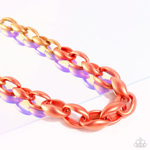Burnt Sienna and Doe concaved hoops gradually increase in size as they elongate towards the middle of the neckline for a colorful combination. Features an adjustable clasp closure.