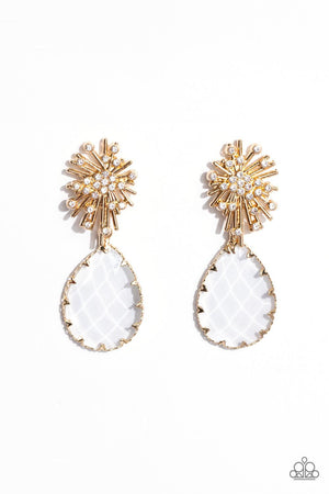 Stellar Shooting Star Gold & White Gem Earrings - Paparazzi Accessories