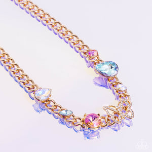 Storybook Succession Gold and Iridescent Rhinestone Necklace - Paparazzi Accessories