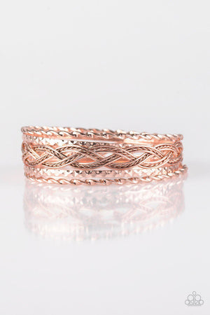 Straight Street Rose Gold Bangle Bracelet Set - Paparazzi Accessories