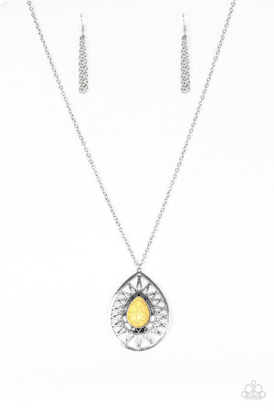 Summer Sunbeam Silver and Yellow Stone Necklace - Paparazzi Accessories