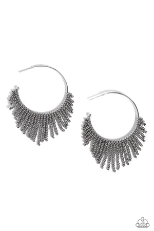 Tailored Tassel Silver Hoop Earrings - Paparazzi Accessories