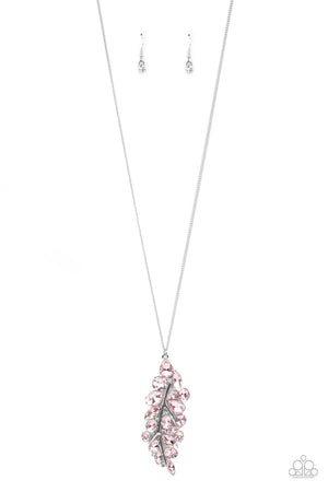 Take A Final BOUGH Pink Rhinestone Leaf Necklace - Paparazzi Accessories