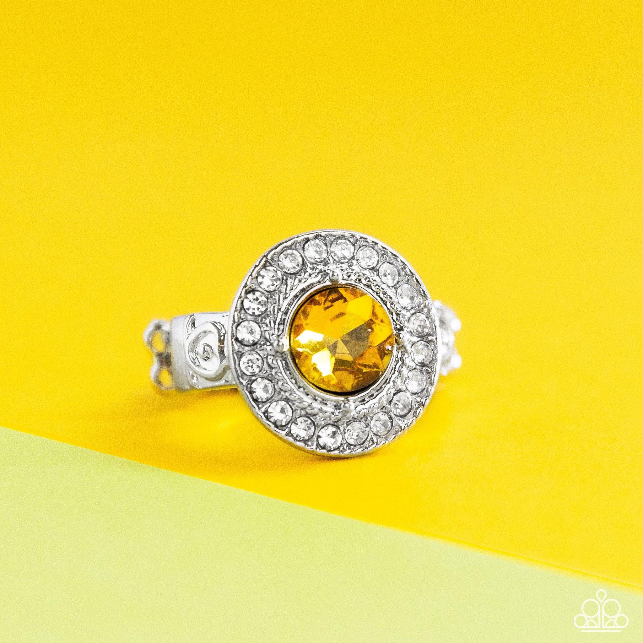 Targeted Timelessness Yellow Rhinestone Ring - Paparazzi Accessories