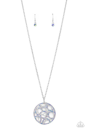 Thanks a MEDALLION Multi Iridescent Rhinestone and Silver Necklace - Paparazzi Accessories