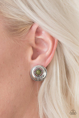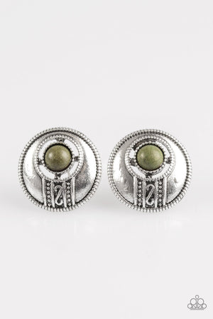 The Four Corners Green Stone Post Earrings - Paparazzi Accessories