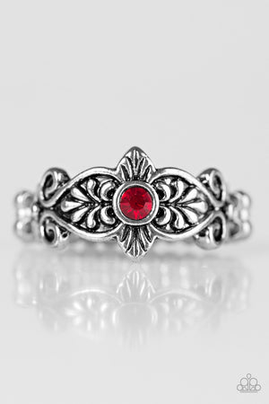 The Little Princess Silver and Red Gem Ring - Paparazzi Accessories