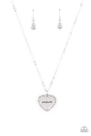 The Real Boss White Rhinestone Heart Necklace - Paparazzi Accessories