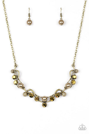 Tie The Knot Brass Pearl and Rhinestone Necklace - Paparazzi Accessories
