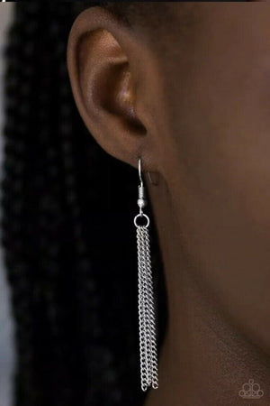 Brushed in a vivacious black finish, a bubbly silver teardrop swings from the bottom of an elongated silver chain for a tribal inspired look. Features an adjustable clasp closure.