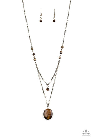 Time To Hit The ROAM Brass and Tiger's Eye Stone Necklace - Paparazzi Accessories