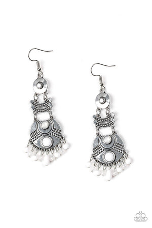 Tropic Tribe White Earrings - Paparazzi Accessories