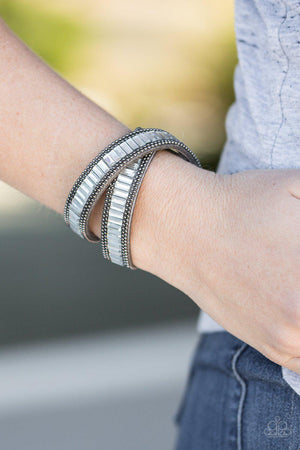 True GLITZ Silver and Gunmetal Double-wrap Snap Bracelet - Paparazzi Accessories