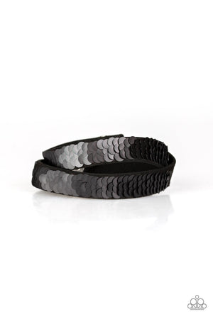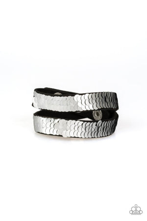 Under The SEQUINS Silver / Black Double-Wrap Snap Bracelet - Paparazzi Accessories