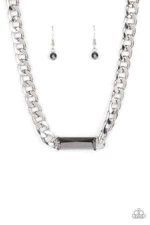 Urban Royalty Silver Chain and Hematite Rhinestone Necklace - Paparazzi Accessories