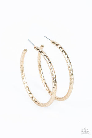 Urban Upgrade Hammered Gold Hoop Earrings - Paparazzi Accessories