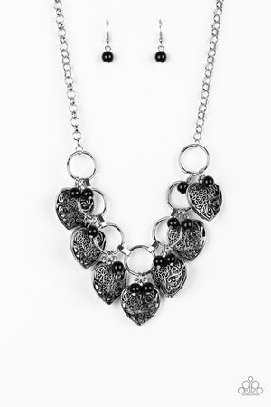 Very Valentine Black and Silver Heart Necklace - Paparazzi Accessories