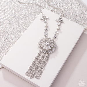 Virtuous Venture White Rhinestone & Pearl Necklace - Paparazzi Accessories
