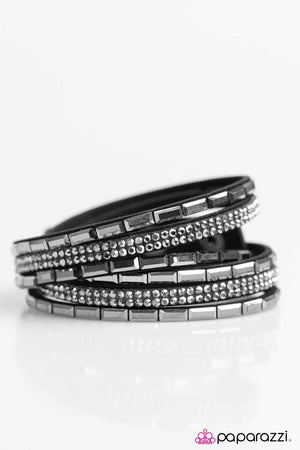 Welcome To The Fashion Show Black and Hematite Double-wrap Snap Bracelet - Paparazzi Accessories