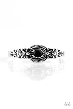 Wide Open Mesas Black Stone and Silver Cuff Bracelet - Paparazzi Accessories