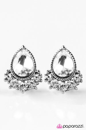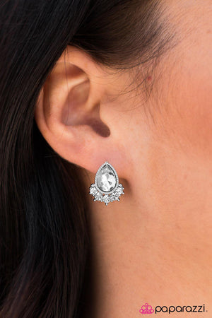Wistful Elegance White Rhinestone Post Earrings - Paparazzi Accessories