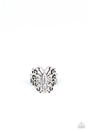 Wouldn't Hurt a Butterfly Silver Ring - Paparazzi Accessories