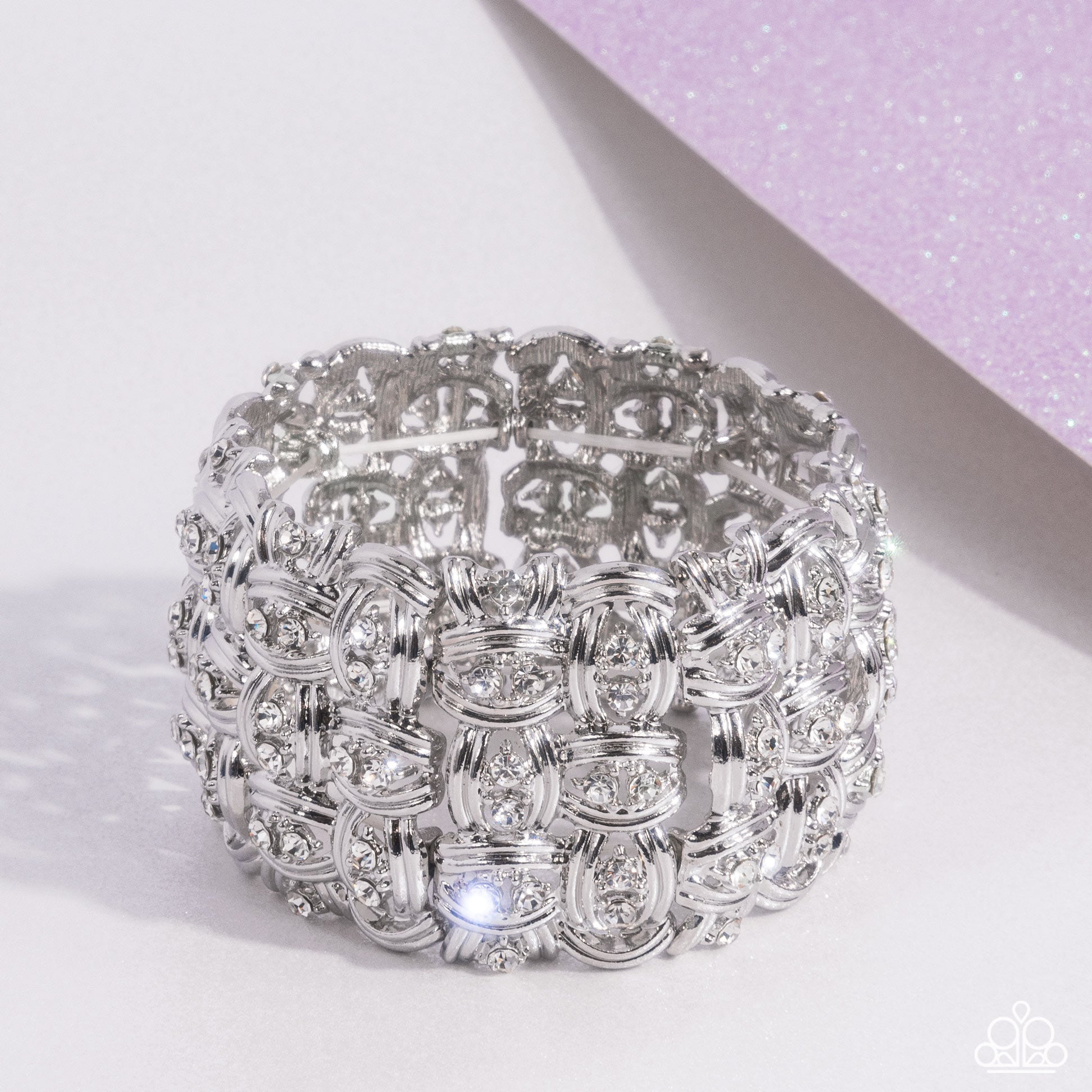 Woven Wardrobe White & Silver Bracelet - Paparazzi Accessories
