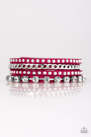 You Talkin' To Me? Hot Pink and Silver Urban Wrap Snap Bracelet - Paparazzi Accessories