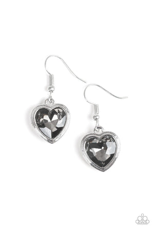 Real Romance Silver Smoky Gem Heart Earrings - Paparazzi Accessories