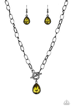 So Sorority Gunmetal and Green Gem Necklace - Paparazzi Accessories