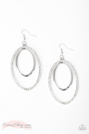 Wrapped In Wealth - Silver and White Rhinestone Earrings - Paparazzi Accessories
